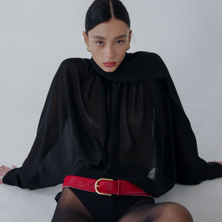 Step up your style game with the luxurious Syl velvet leather belt, available in a range of colors including salmon, rust, ivory, black, and yellow. Crafted from high-quality Italian leather, this belt is designed with a soft, velvety finish that adds a plush and...- $119.00